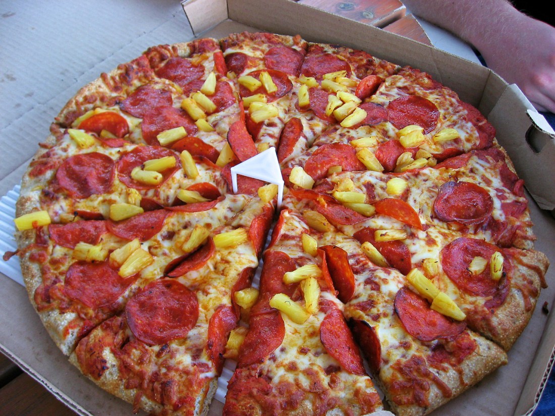 “Let’s agree to disagree. Just pick the pineapple off”, turning your attention back to the TV.